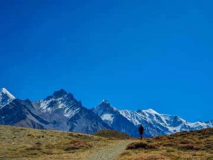 Ascension raide vers le col de Thorong La, le point le plus élevé du trek, puis descente vers le site sacré de Muktinath, un lieu de signification spirituelle. Le col offre des vues à couper le souffle sur les sommets et les vallées environnants.